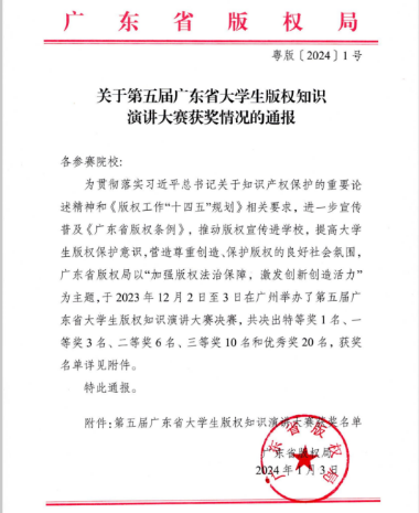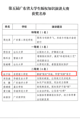 在公司知识产权系龚红兵、李文伟、庄瑞银、胡庆乐老师和公司宣传部邓磊老师、文传公司传媒系李缨副教授的指导下,法社学子在第五届广东省老员工版权知识演讲大赛中再创佳绩。