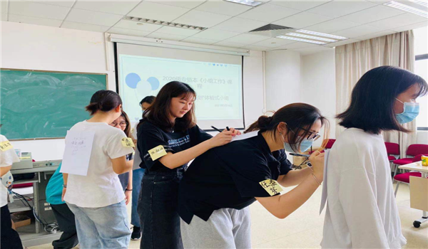 活动开始由两位督导为同学们讲解本次小组活动的主题和目标,引导小组成员进入状态。通过共同制定小组契约,并且运用积极回应的技巧,复述小组成员的契约内容,进一步让同学们意识到契约精神是小组工作开展的基础,协助小组形成吸引力和凝聚力,让小组成员更好的融入小组。