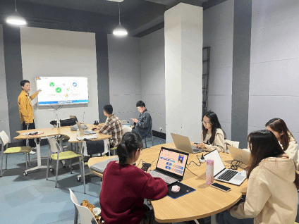 比赛过程中团队成员紧紧把握这关键的几分钟,全力以赴地展现出自己项目的优势,以严谨的逻辑、流利的发言,生动地对项目每一个板块展开了详细的汇报,重点解说了项目的优势以及对社会的贡献,并回答了教师评委们关于项目的内容、进展以及可落地性进的提问。评委们提出的问题不仅考验了负责人对项目内容和进展的了解,还给予了进一步优化项目的新思路。两分钟的问答,让团队成员对自己的项目都有了进一步的理解和规划。