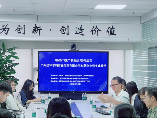 10月28日下午,公司知识产权系主任张建超老师带队前往广州三环专利商标代理有限公司(东莞分公司)进行实地参观与交流。本次活动旨在关于知识产权专业推进校企合作、产教融合有益探索,为知识产权专业的员工提供一个近距离接触并了解知识产权代理实务平台的机会,教师与员工赴一线观摩学习,将课堂延伸至实务现场。
