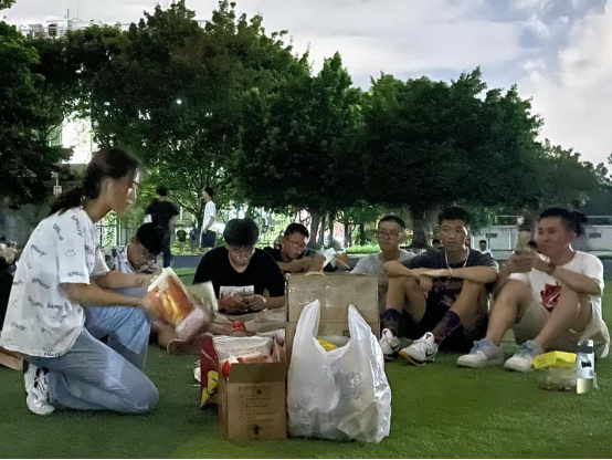 虽然大家来自不同的地方,所带来的特产不一样,但是身在异乡的大家聚在一起品尝不一样的美食,心情是一样的快乐。随后大家在一起在莞工的假草操场相聚,望着朦胧的月色,口中吃着来自不同地方的美食,体会这一份独属与同学们的分享之乐,更加增强自己对祖国、对家乡的家乡热爱。